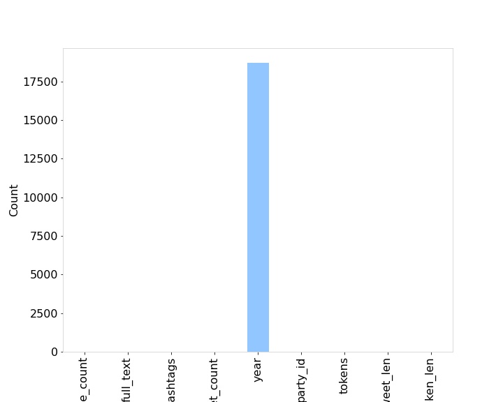 The dataset used had null values only for the year feature as shown below in Fig [fig:nullDistr]. As a result there was not a lot of null value corrections required.
